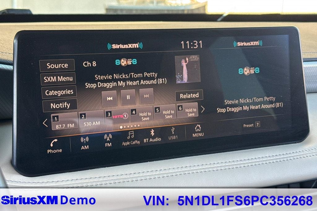 - Radio: AM/FM Audio System -inc: 9 speakers, INFINITI InTouch 12.3" interactive display w/navigation, wireless Apple CarPlay w/integration, Android Auto, Siri Eyes Free, Google Assistant, INFINITI voice recognition, Bluetooth® hands-free phone, HD Radio technology, WiFi hotspot and SiriusXM radio